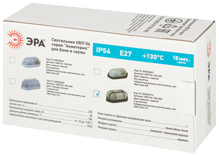 Светильник ЭРА НБП 04-100-002 Акватермо алюминий/стекло решетка IP54 E27 max 100Вт 280х160 овал черный