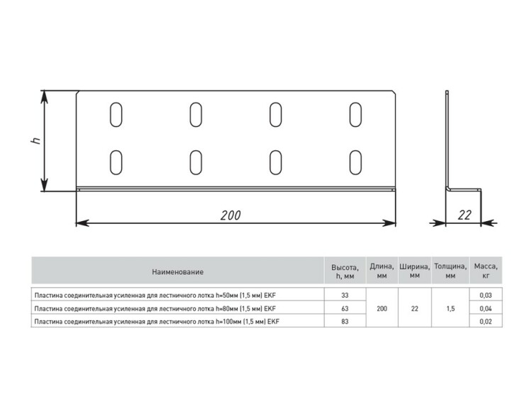 Соединитель продольный для лотка кабельного лестничного сталь горячее цинкование EKF EKF-Line