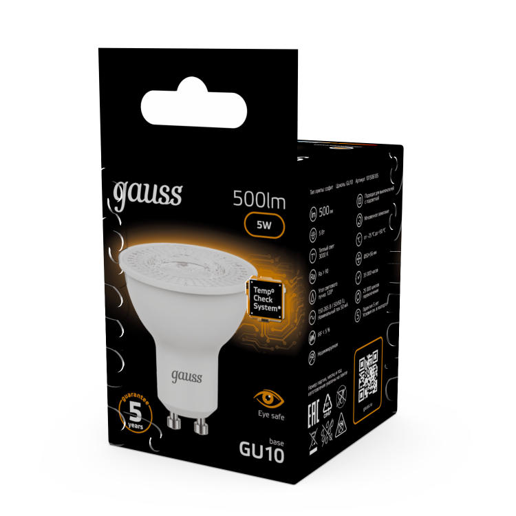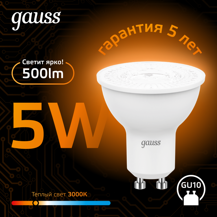 Лампа светодиодная 5 Вт 230В GU10 d=51mm, 3000К тёплый