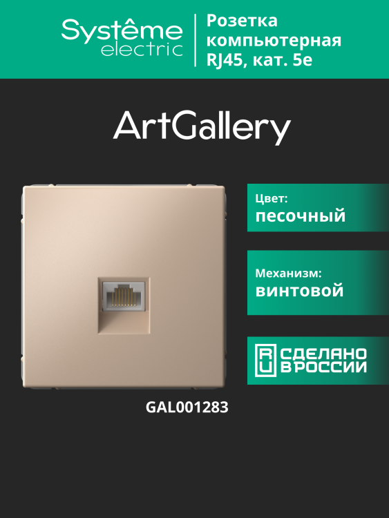 Розетка компьютерная RJ45 кат.5E песочный ArtGallery