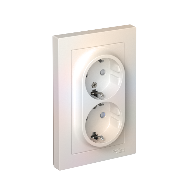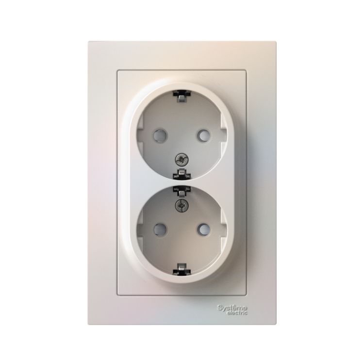 Розетка 2х2P+E со шторками в сборе 16А жемчуг AtlasDesign