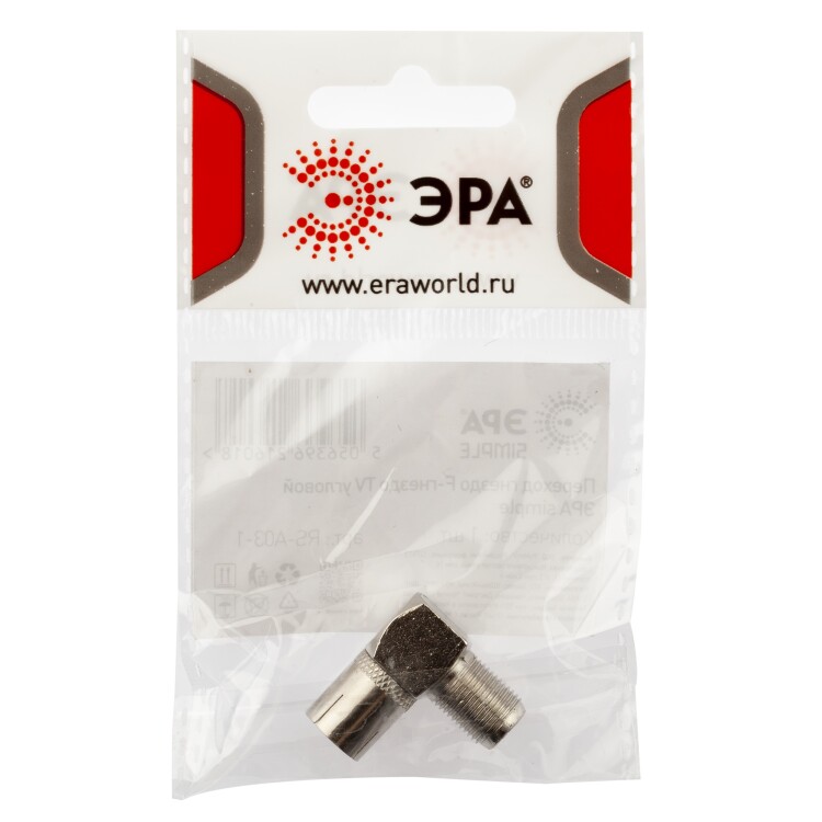 Переходник ЭРА SIMPLE гнездо F-гнездо TV угловой упаковка 1 шт.