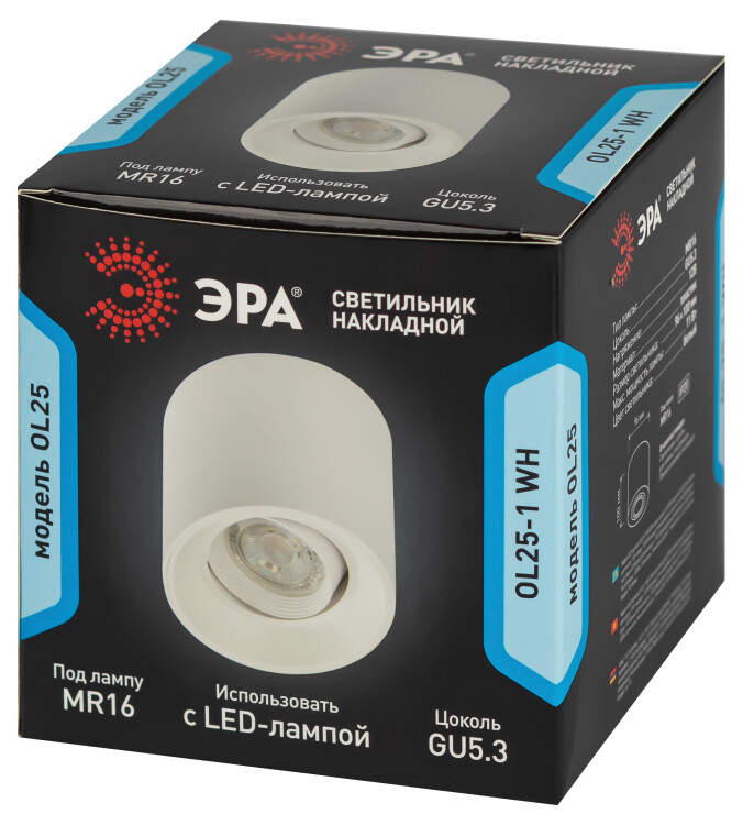 Светильник настенно-потолочный спот ЭРА OL25-1 WH MR16/GU5.3, белый, поворотный
