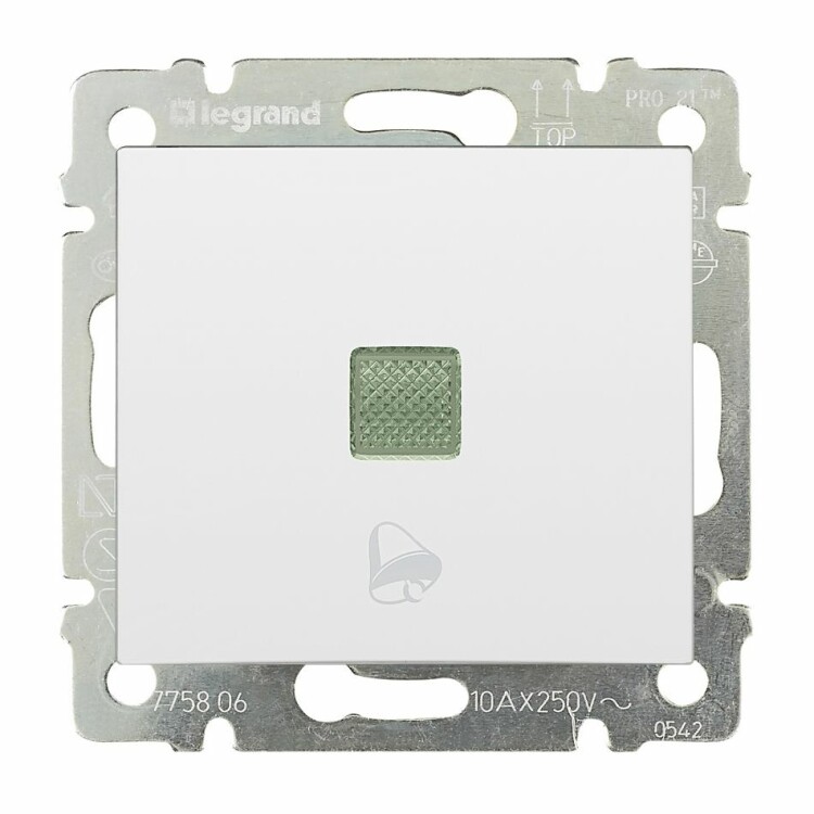 Выключатель кнопочный с подсветкой с символом Звонок белый Valena