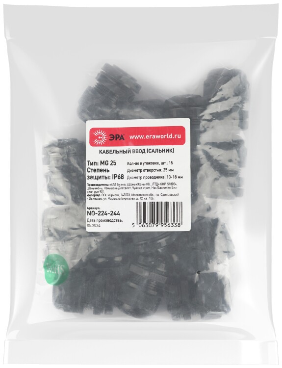 Кабельный ввод сальник ЭРА NO-224-244 MG 25 (d отв.25 мм / d провод.13-18 мм) IP68 (упаковка 15 штук)