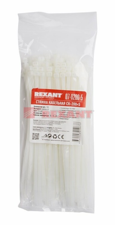 Стяжка кабельная нейлоновая 200x4,8мм, белая (100 шт/уп) REXANT