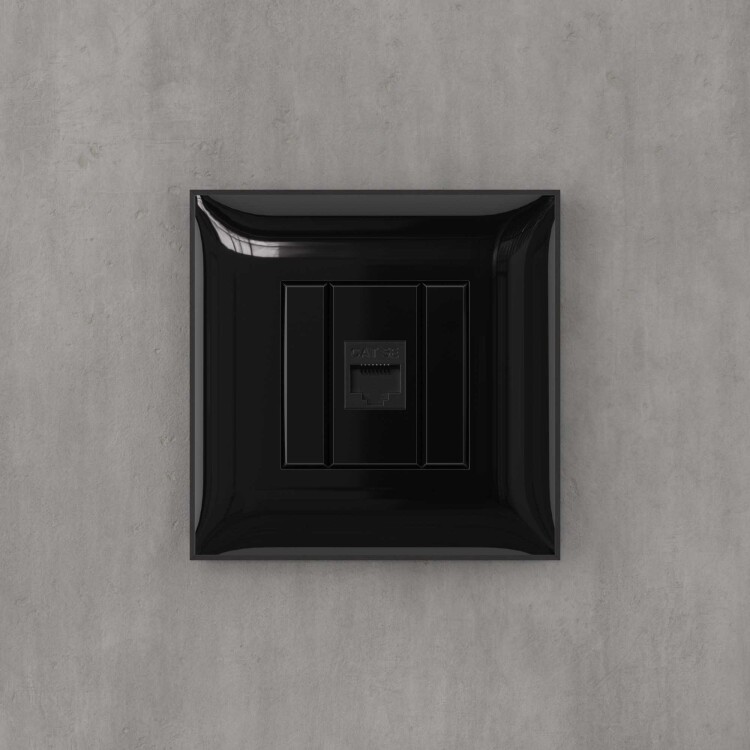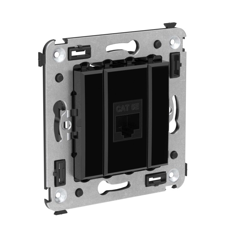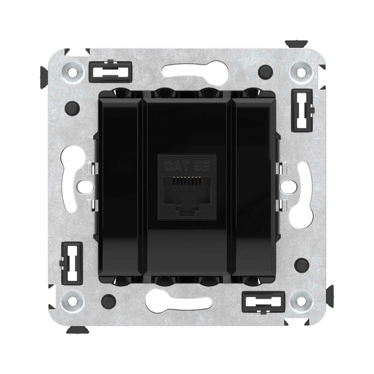 Компьютерная розетка RJ-45 без шторки в стену, кат.5е одинарная, "Avanti", "Черный квадрат"