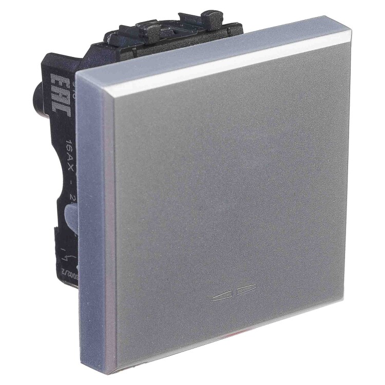 Переключатель одноклавишный модульный, "Avanti", "Закаленная сталь", 2 модуля