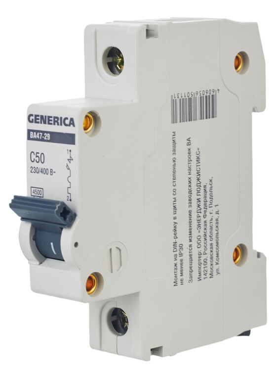 Автомат. выкл. 1-пол. 50А тип C 4,5кА серия ВА47-29 GENERICA