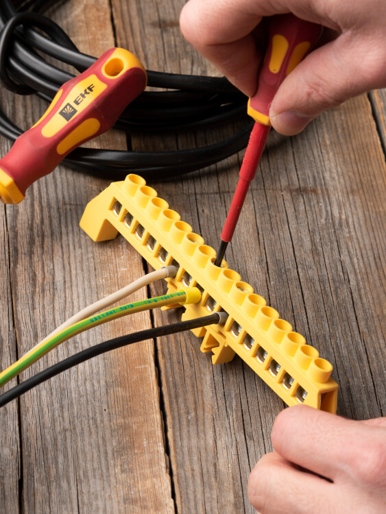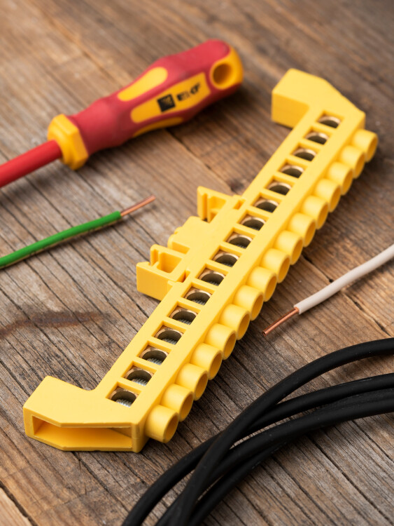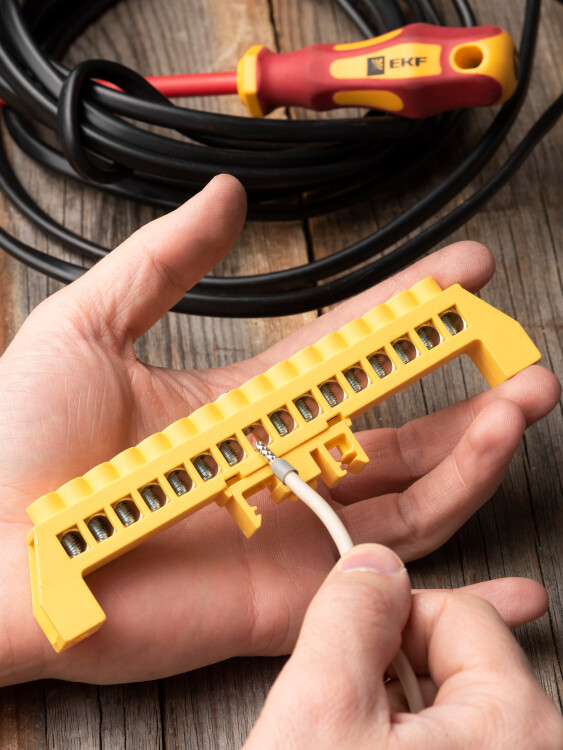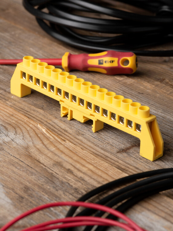 Шина PE "земля" 8х12мм 16 отв. желтый в нейл. корп. комбинир.