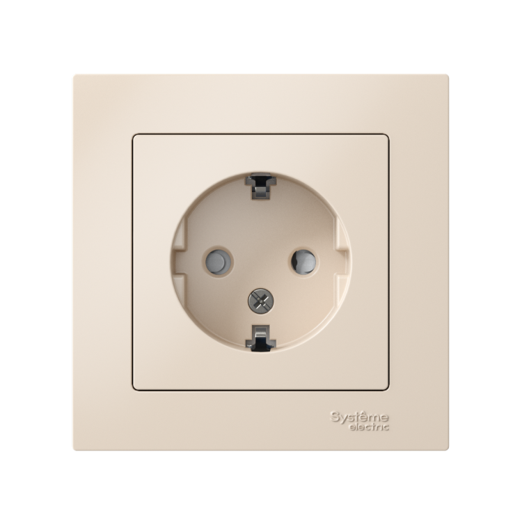Розетка 2P+E со шторками в сборе 16А бежевый AtlasDesign