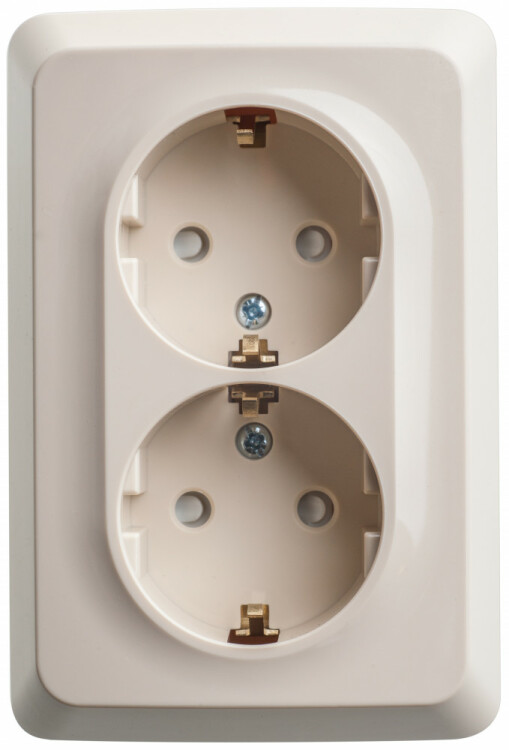 Розетка 2х2P+E угловая со шторками кремовый Этюд
