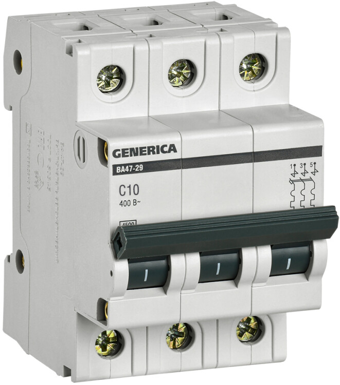 Автомат. выкл. 3-пол. 10А тип C 4,5кА серия ВА47-29 GENERICA