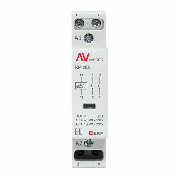 Контактор модульный КМ 20А 2NО 230VAC (1 мод.) AVERES EKF