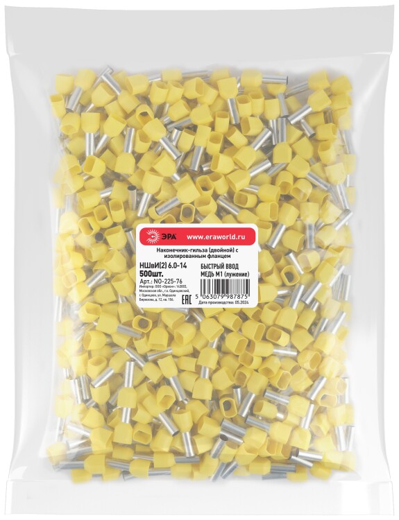 Наконечник-гильза ЭРА NO-225-76 (двойной) НШвИ(2) 6,0-14 с изолированным фланцем (упаковка 500 шт.)