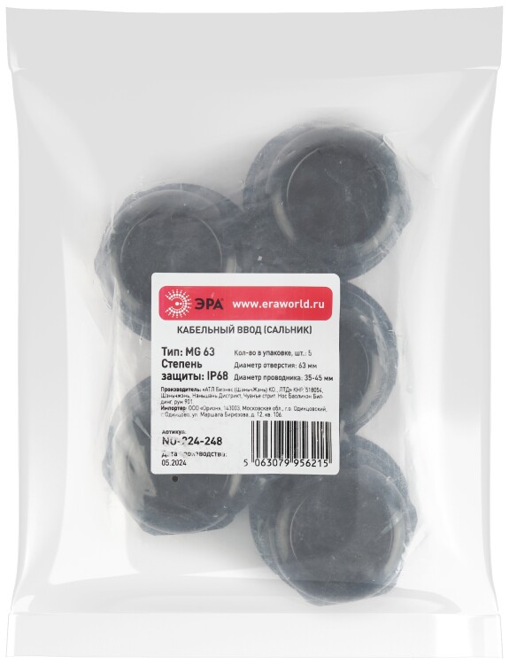 Кабельный ввод сальник ЭРА NO-224-248 MG 63 (d отв.63 мм / d провод. 35-45 мм) IP68 (упаковка 5 штук)