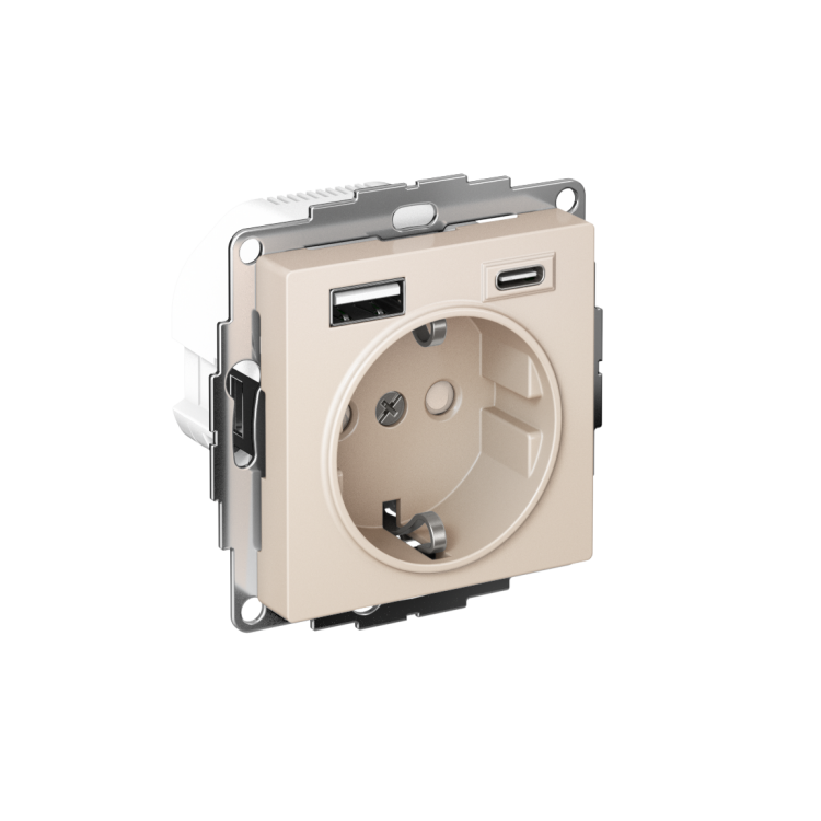 Розетка 2P+E с USB A+C 5В/2,4А/3А, 2х5В/1,5А 16А бежевый AtlasDesign