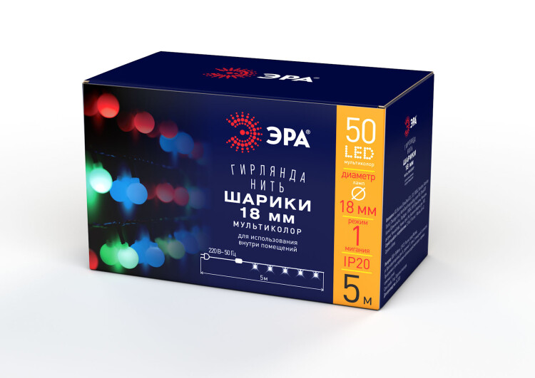 ENIN - 18BM ЭРА Гирлянда LED Нить Шарики d18мм, 5 м мультиколор, 220V, (36/648)