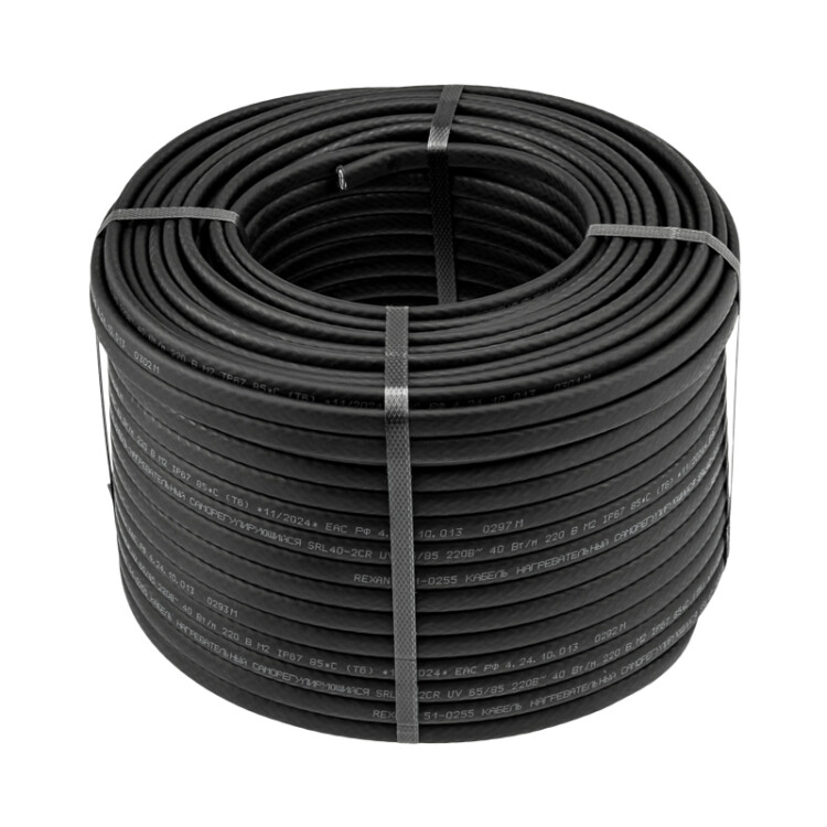Кабель греющий (нагревательный) саморегулирующийся с УФ-защитой SRL40-2CR UV, экранированный, 40Вт/м, 1,0мм2/45м, буxта 100м REXANT