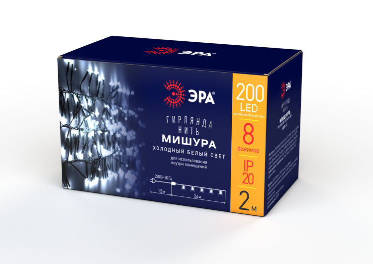 ENIN - GC ЭРА Гирлянда LED Нить Мишура 3,9 м зеленый провод, холодный свет, 220V (24/576)