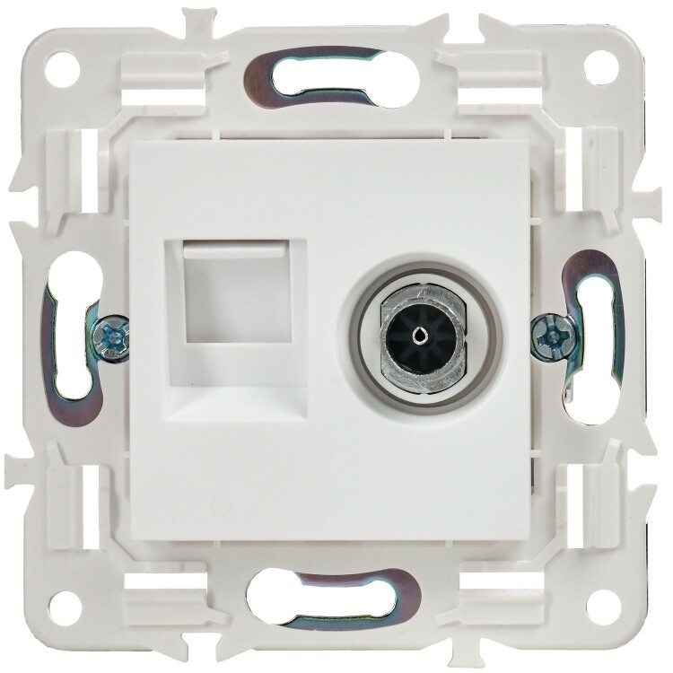 Розетка двойная TV+RJ45 кат.5E арктический белый SKANDY