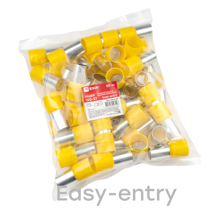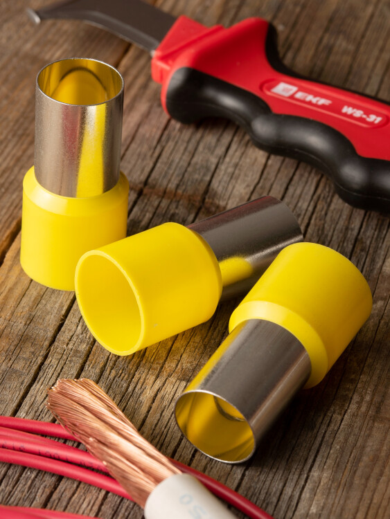 Наконечник-гильза втулочный 150мм? медь желтый луженый изолированный EKF