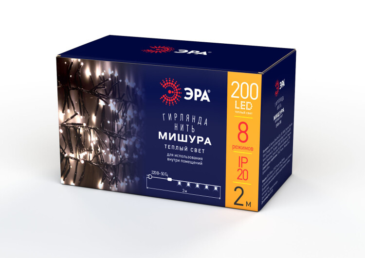 ENIN - GW ЭРА Гирлянда LED Нить Мишура 3,9 м зеленый провод, теплый свет, 220V (24/576)