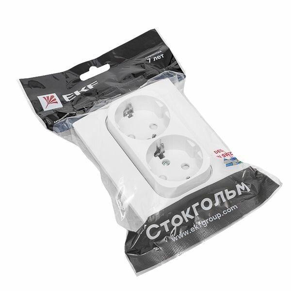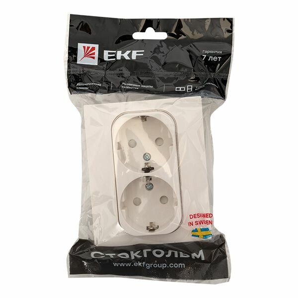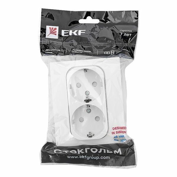 Стокгольм Розетка 2-местная с/з 16А автоматические клеммы белая с защ. штор. EKF PROxima