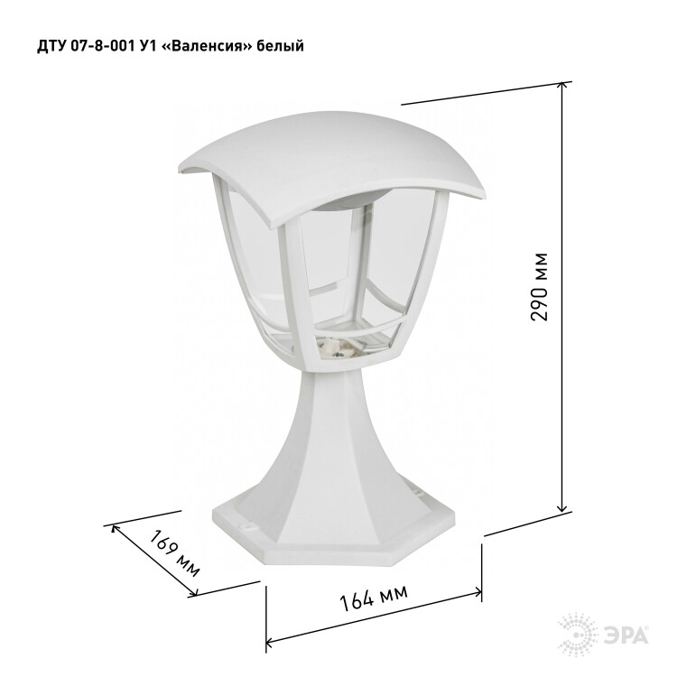 Садово-парковый светильник ЭРА ДТУ 07-8-001 Валенсия белый 4 гранный напольный IP44 светодиодный 8Вт 3000K