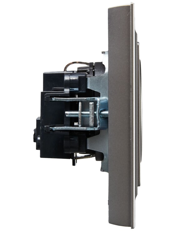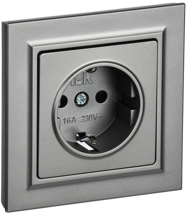 Розетка 2P+E с защитными шторками 16А в сборе РСР14-1-0-БрС сталь BRITE