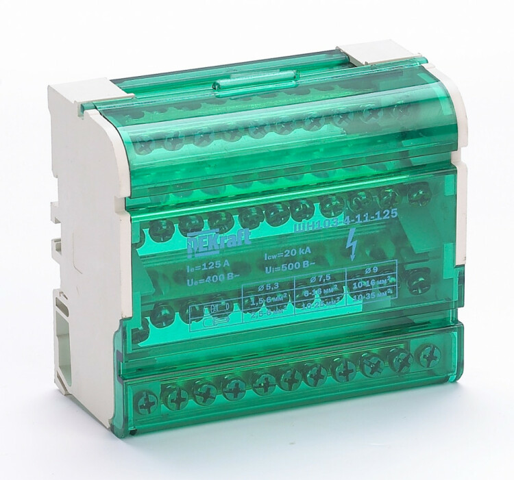 Кросс-модуль на DIN-рейку, 4 полюса, 125 А, 7х1,5-6 мм², 2х6-16 мм², 2х10-16 мм², 125А ШН-103