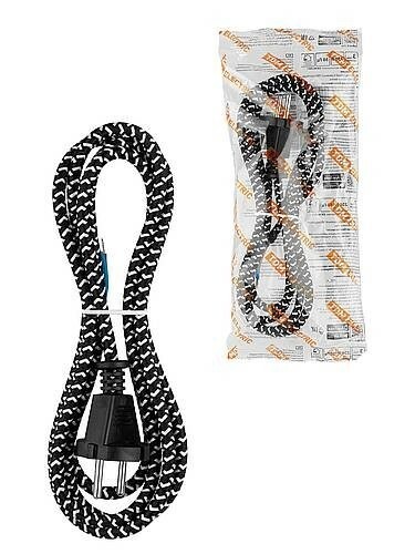 Шнур сетевой с вилкой в тканевой оплетке ПВС 2x0,75мм2 1,8м, 1400 Вт б/з черный TDM