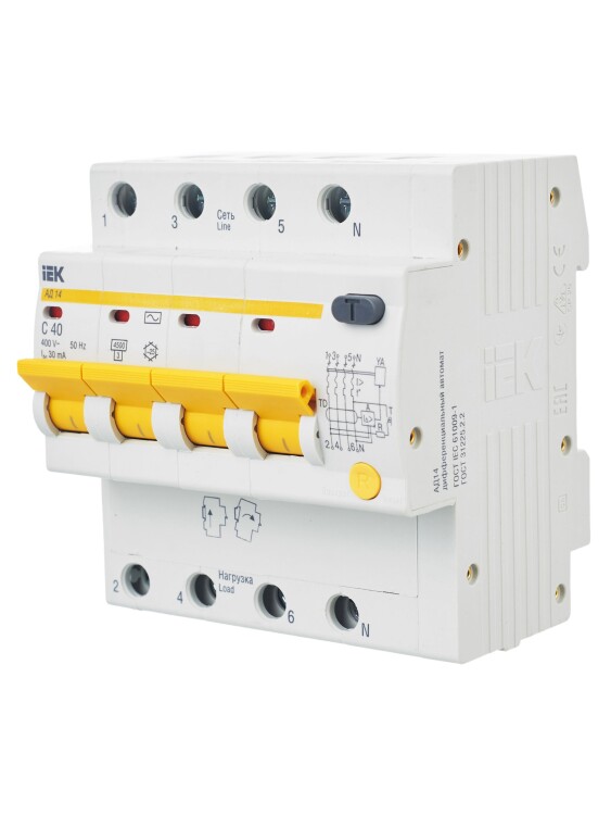 Автомат. выкл. дифф. тока 4-пол. 40А 30мА тип AС 4,5кА хар-ка C серия АД14