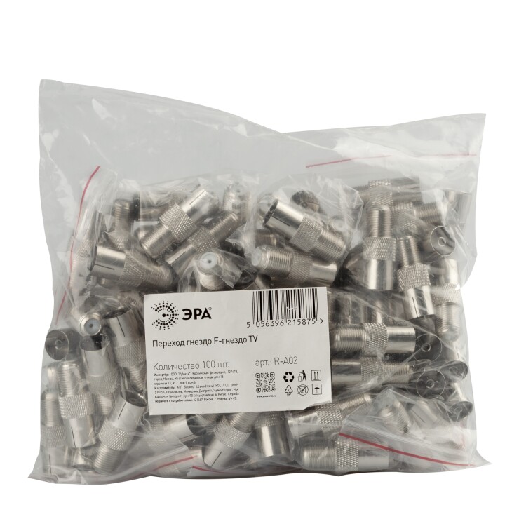 Переходник ЭРА гнездо F-гнездо TV упаковка 100 шт.