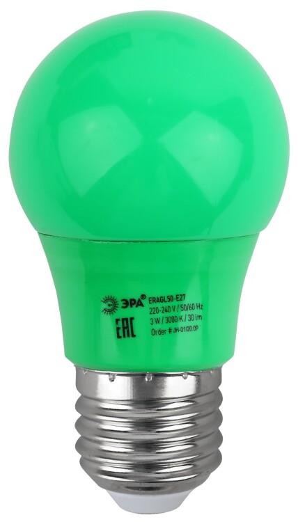 Лампочка светодиодная ЭРА STD ERAGL50-E27 E27 / Е27 3Вт груша зеленый для белт-лайт