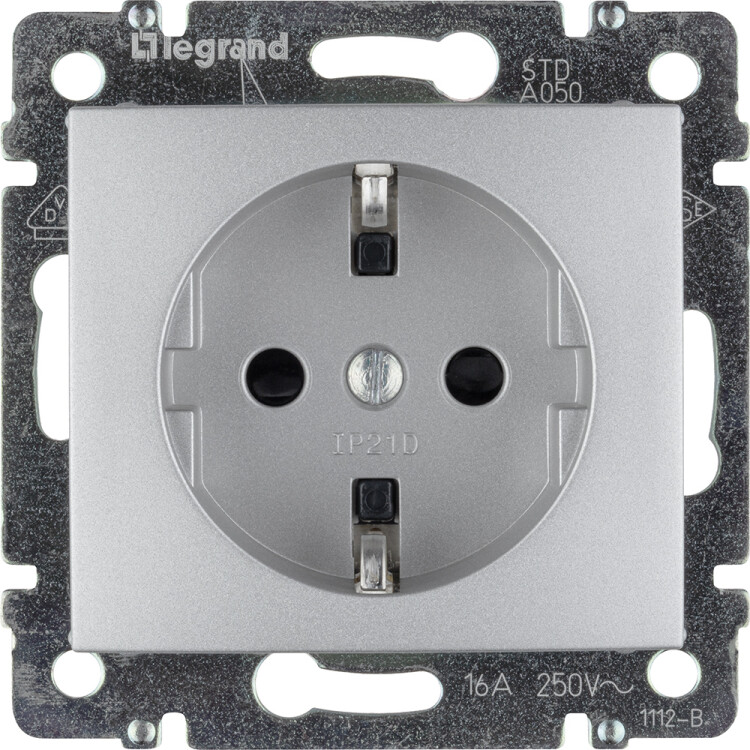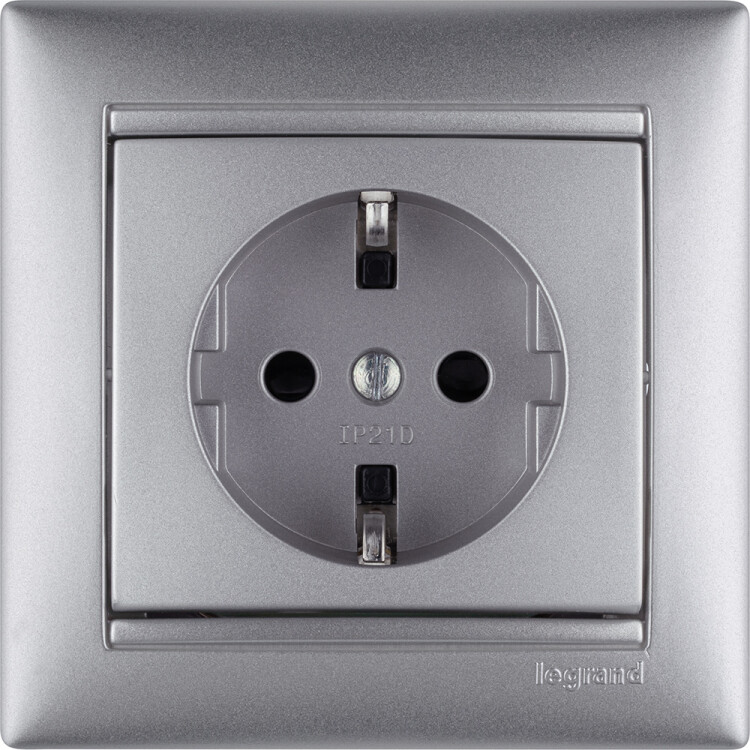 Розетка 2P+E 16A со шторками винт.зажим алюминий Valena