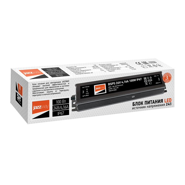 Драйвер герметичный BSPS 24V 4,16A=100W 3 г.гарантии IP67