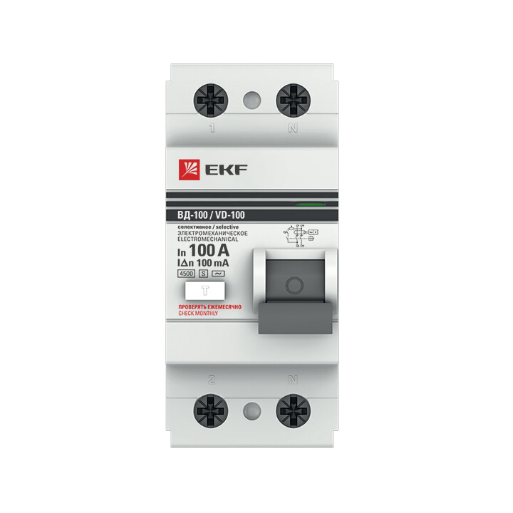 Устройство защитного отключения селективное 2P 100А/100мА (электромеханическое) EKF PROxima