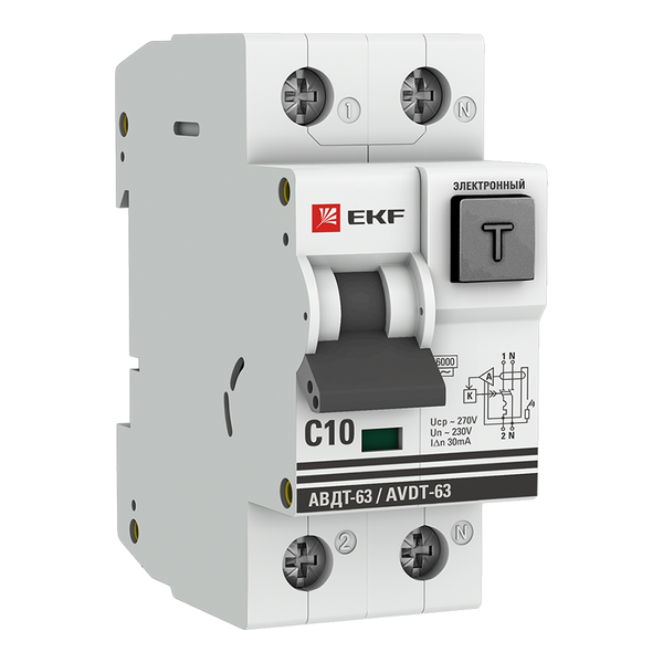 Диф. автомат 10А 30мА х-ка C эл. тип АС 6кА АВДТ-63 EKF PROxima