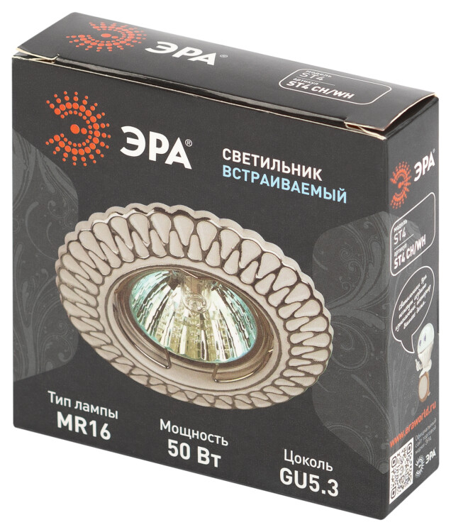 ST4 CH/WH /1 Светильник ЭРА штампованный MR16,12V/220V, 50W белый/хром (100/2800)