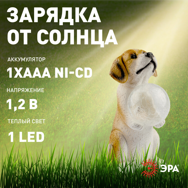 Светильник уличный ЭРА ERASF22-11 на солнечных батареях садовый Золотистый ретривер щенок 28 см