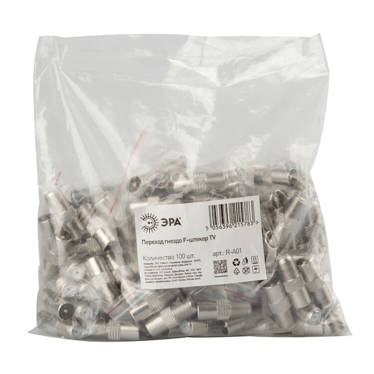 Переходник ЭРА гнездо F-штекер TV упаковка 100 шт.