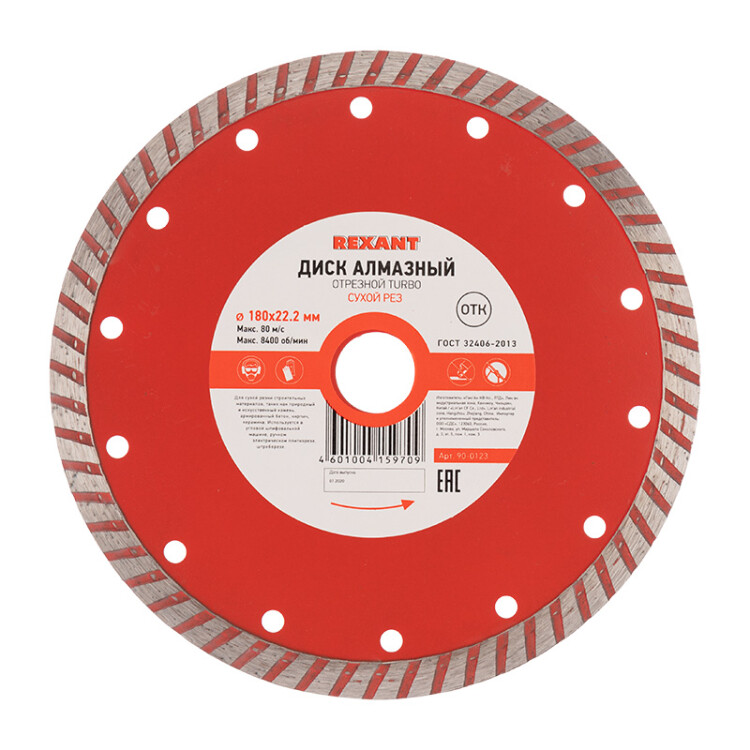Диск алмазный, турбо, 180х22,2х2,2 мм