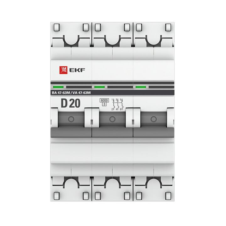 Авт. выкл. 3P 20А (D) 6кА ВА 47-63M без тепл. расцепит. EKF PROxima