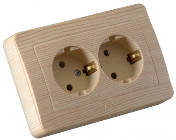 РС16-352-02 Розетка скрытой установки, двухместная, с заземляющим контактом, со шторкой, (250В,16А), цвет сосна