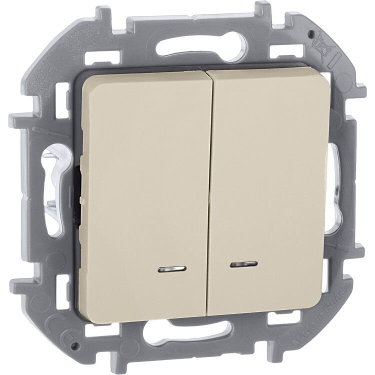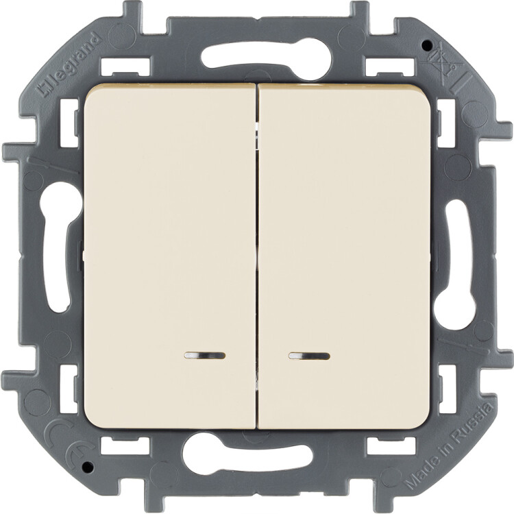 Выключатель 2 клавишный с подсветкой/индикацией 10A 250В слоновая кость INSPIRIA