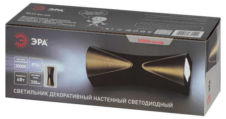 Декоративная подсветка ЭРА WL43 BK+GD светодиодная 6Вт 3500К черный/золото IP54 для интерьера, фасадов зданий