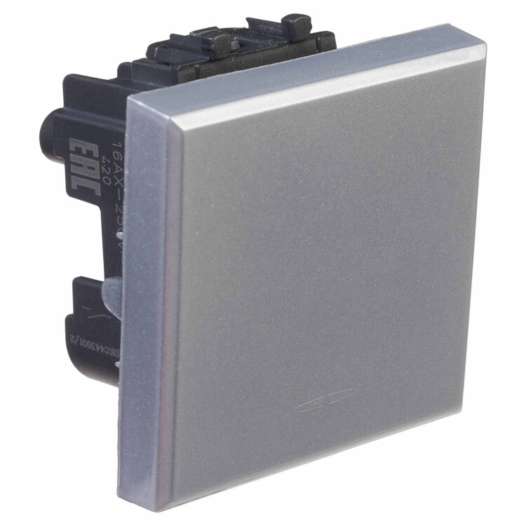 Выключатель одноклавишный модульный, "Avanti", " Закаленная сталь", 2модуля