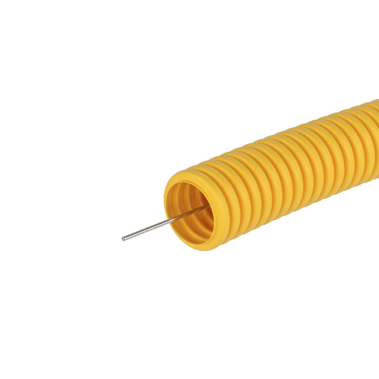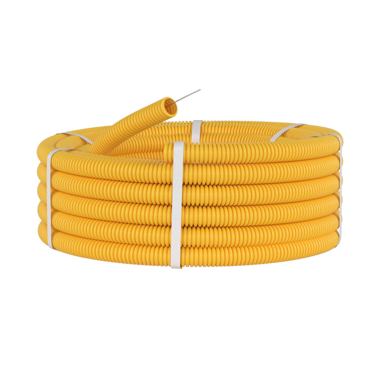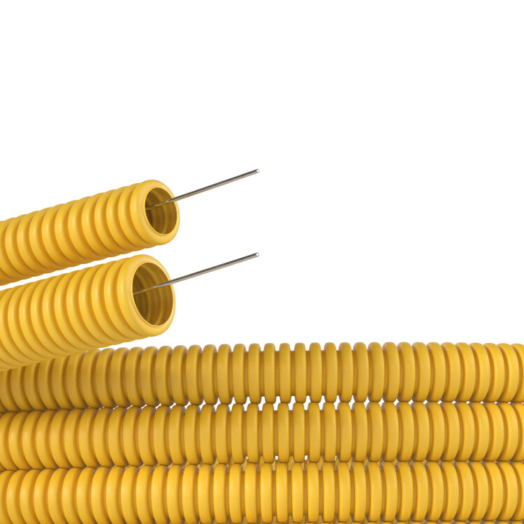 Труба ПВХ гибкая гофрированная д.20 мм, лёгкая, с протяжкой, цвет жёлтый, (Бухта 100м)