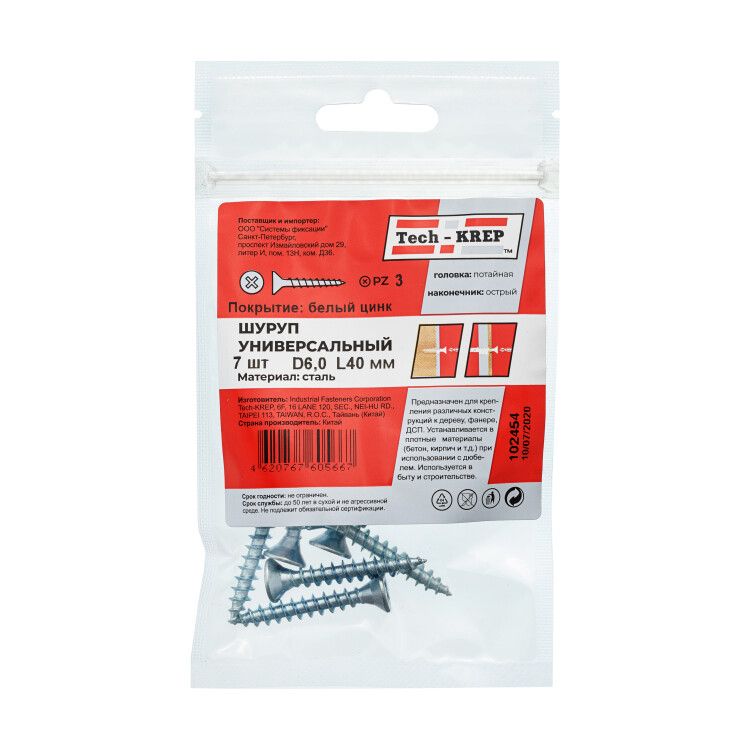Саморез ШУц 6,0х40 потай. гол. (7 шт) - пакет